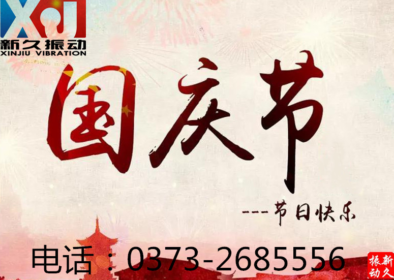 國(guó)慶節(jié)期間,新久振動(dòng)公司放假3天,時(shí)間:10月1號(hào)~3號(hào),放假期間,為不影響客戶朋友對(duì)產(chǎn)品的咨詢和了解,我們特別安排了工作人員值班,大家如有問(wèn)題請(qǐng)撥打客服電話:0373-2685556,進(jìn)行咨詢!