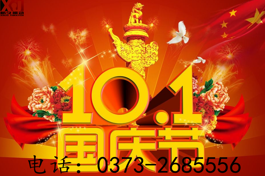 國慶節(jié)即將來臨,新鄉(xiāng)市新久振動機(jī)械有限公司全體員工祝福您,愿你:一笑煩惱跑,二笑憂愁消,三笑心情好,四笑不變老,五笑興致高,六笑幸福繞,七笑快樂到,八笑收入好,九笑步步高,十全十美樂逍遙。