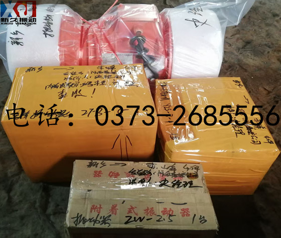 備注:ZW-2.5型系ZW系列附著式振動器,激振力:0-2.5kN,轉(zhuǎn)速:2850r/min,功率:0.37kW,電壓:380v,電流:1.45A,可作為直線振動篩分過濾機(jī)、振動放礦機(jī)、振動落砂機(jī)、振動輸送裝置等振動機(jī)械設(shè)備的激振源和動力源。