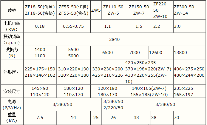 2、ZF/ZW/ZB分別注解為:附著式、外部式、平板式,只是不同型號代碼標示,沒有特別技術(shù)含義。